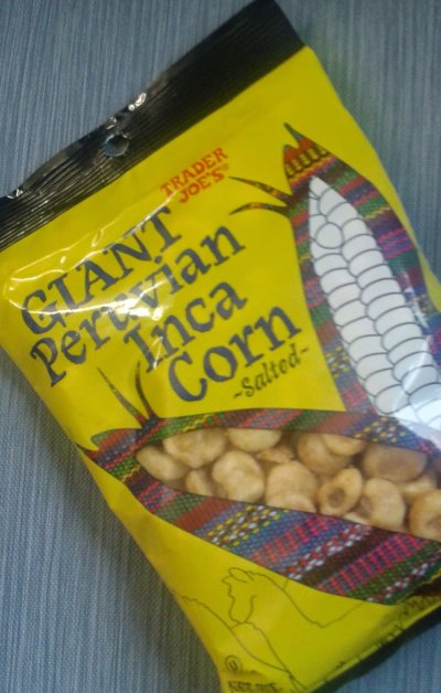 Serving size of Giant Peruvian Inca Corn, Salated is 1/3 cup (twenty eight g).